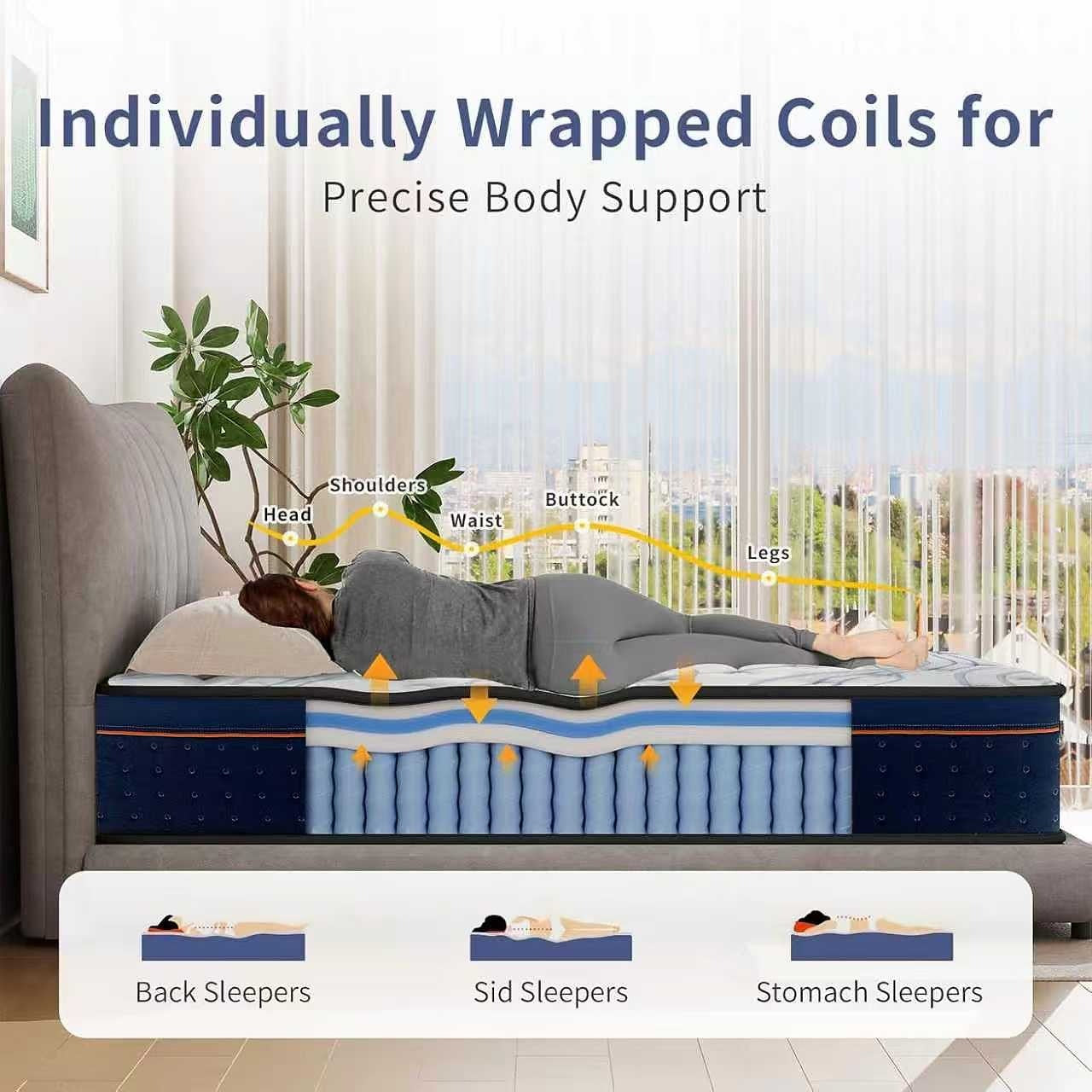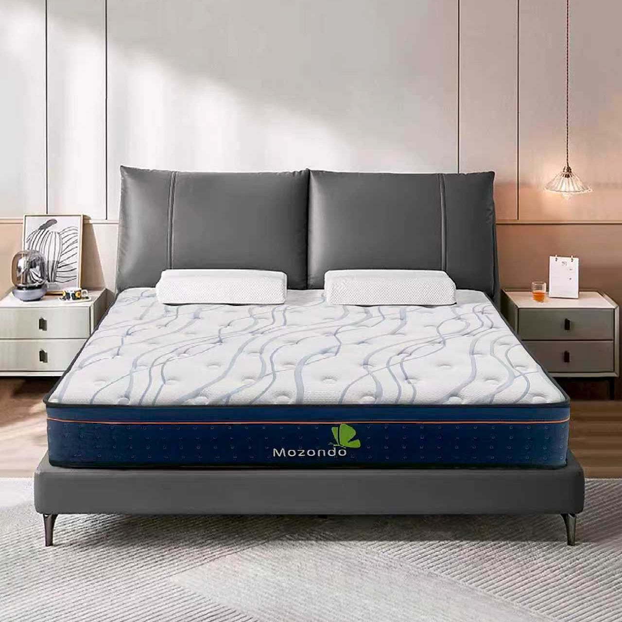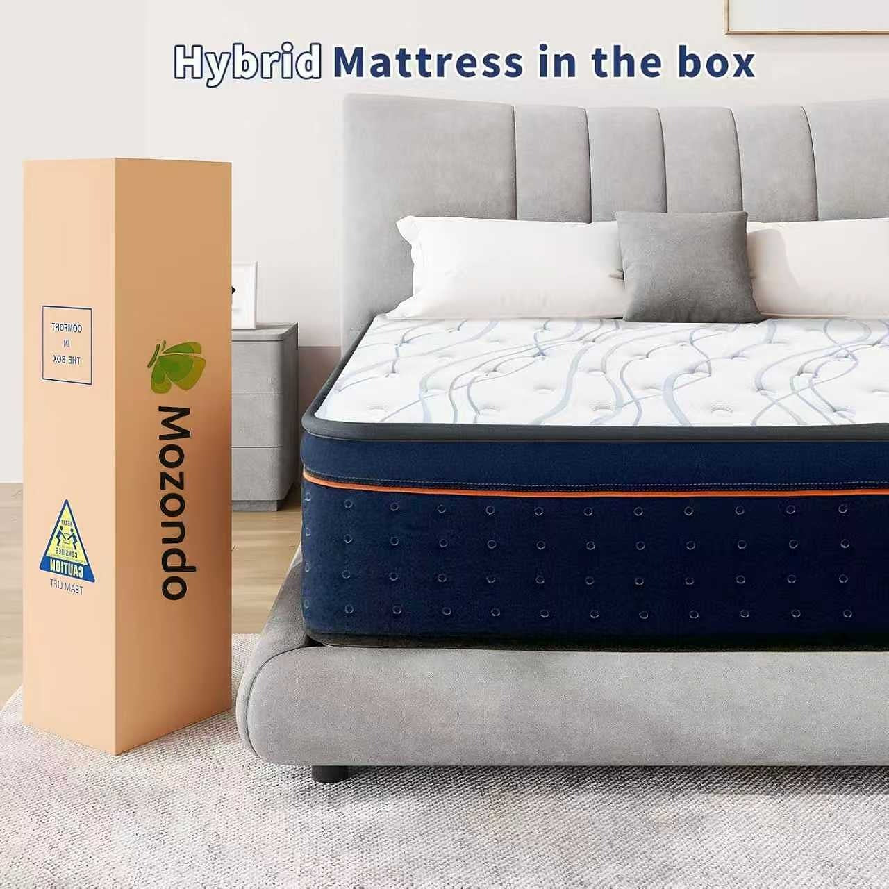 Die Luxus Premium Hybrid-Taschenfederkernmatratze von Mozondo besticht durch eine Kombination aus atmungsaktivem Strickgewebe, hochwertigem Schaumstoff und einer 25 cm hohen, unabhängigen Taschenfederung für hervorragenden Komfort und optimale Unterstützung. Eine plissierte Baumwollschicht mit 1000# klebstofffreier Baumwolle sowie eine 2 cm dicke Wellenmassage-Baumwolllage sorgen für ausgezeichnete Belüftung und ein angenehmes Liegegefühl. Der 1,5 cm dicke D20 Schaumstoffrand und das atmungsaktive 3D-Netz am Matratzenboden gewährleisten langfristige Stabilität und Frische. Mit mittlerem Härtegrad H3 und Zertifizierungen wie OEKO-TEX® Standard 100, CertiPUR-EU und GUT® garantiert sie nachhaltige und schadstofffreie Qualität für gesunden Schlaf. Pflegehinweise beachten: nicht bleichen, bügeln oder chemisch reinigen.